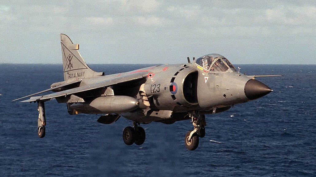 . British Aerospace Sea Harrier FA2 Developed in Great Britain by Hawker Siddeley (later part of British Aerospace) the Harrier is one of only three vertical/short takeoff and landing jets to go into full production Two Royal Navy British Aerospace Sea Harrier FRS.1 from 800 Naval Air Squadron, assigned to the aircraft carrier HMS 'Illustrious (R06), approach the flight deck of the U.S
